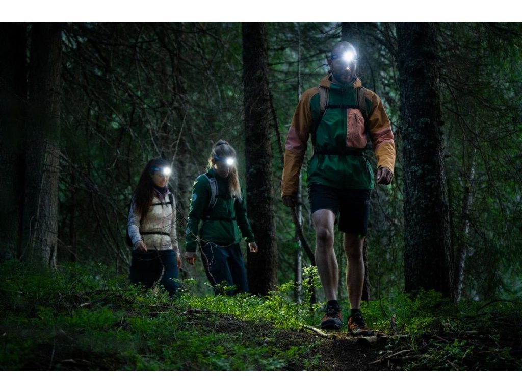 - Červené svetlo na zachovanie nočného videnia bez oslnenia osôb okolo vás a blikanie na signalizáciu vašej polohy, najmä v núdzových situáciách