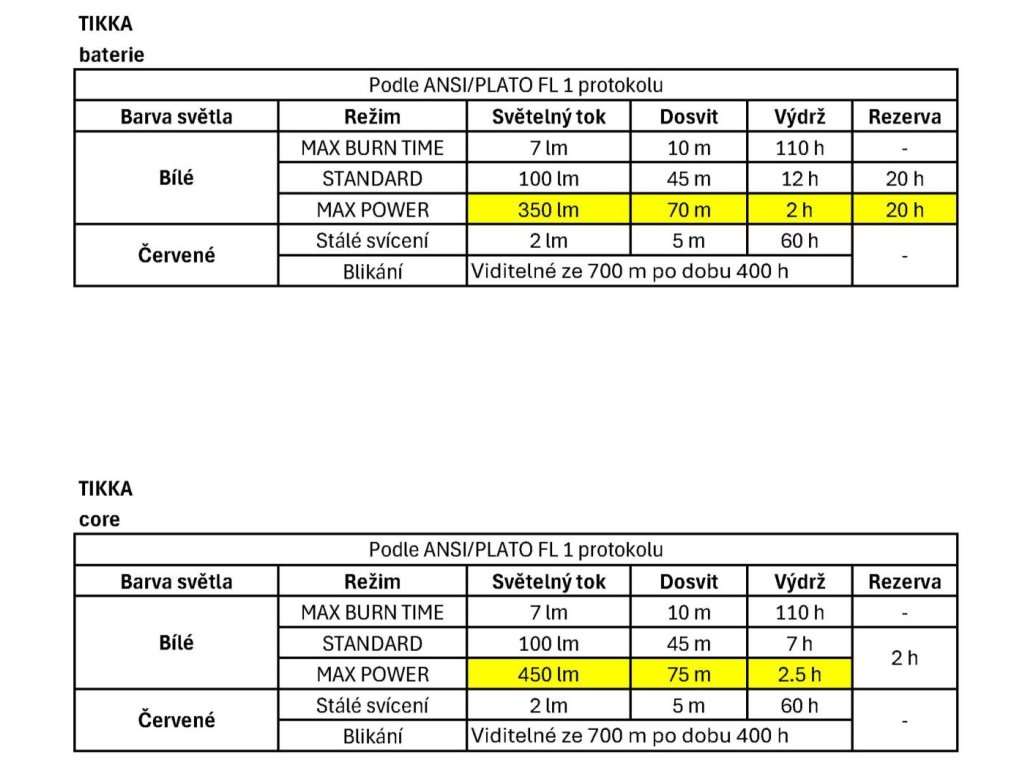 - Technológia HYBRID CONCEPT: TIKKA sa dodáva s 3 štandardnými batériami AAA/LR03 a je kompatibilná s dobíjacím akumulátorom CORE (nie je súčasťou balenia); čelovka automaticky rozpozná zdroj energie a upraví svetelný výstup