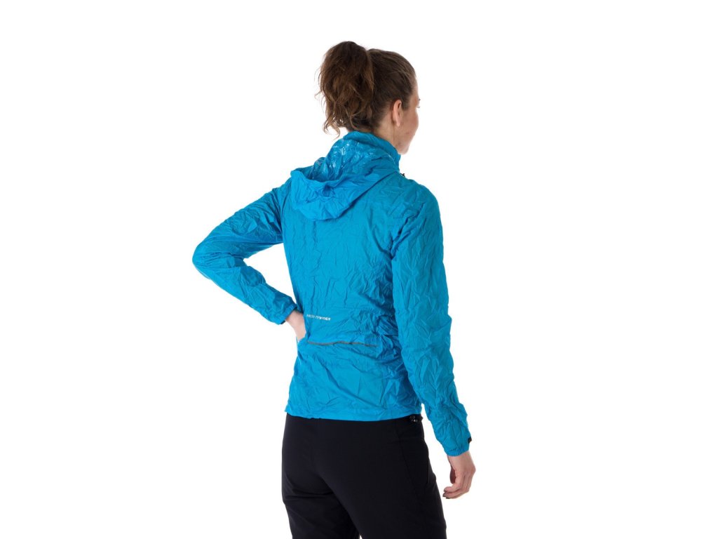 Nastaviteľná a tvarovaná kapucňa umožňuje dobrý výhľad a je možné ju schovať do goliera. Otvory v podpazuší a v driekovej oblasti zabezpečujú efektívne odvetrávanie. Bundu je možné čiastočne odzipsovať a pripnúť na hrudi páskou, čo zabraňuje povievaniu materiálu. Elastické manžety s fixáciou palca zabraňujú zhrňovaniu rukávov a spolu s nastaviteľným pásom zabezpečujú ochranu pred vetrom. Cyklisti ocenia prístup do zadného vrecka cez vetracie otvory na chrbte a výrazné 360° reflexné prvky zabezpečia bezpečnú viditeľnosť.