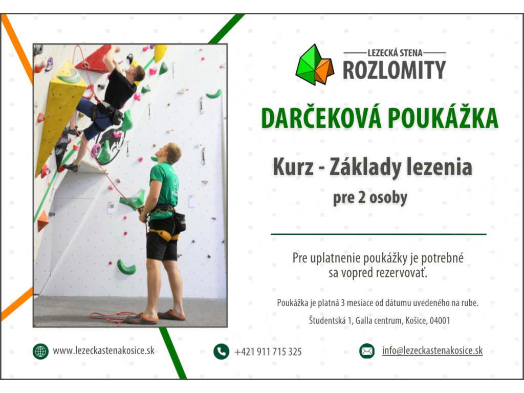 Viac info a prihlasovanie na webe: https://www.lezeckastenakosice.sk/zaklady-lezenia/