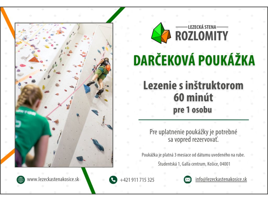viac informácií: https://www.lezeckastenakosice.sk/lezenie-s-instruktorom/