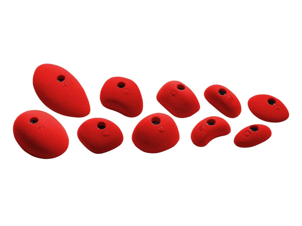 Sada desiatich chytov rôznej veľkosti na stavbu domácej tréningovej steny. Jemná štruktúra povrchu uľahčuje úchop.