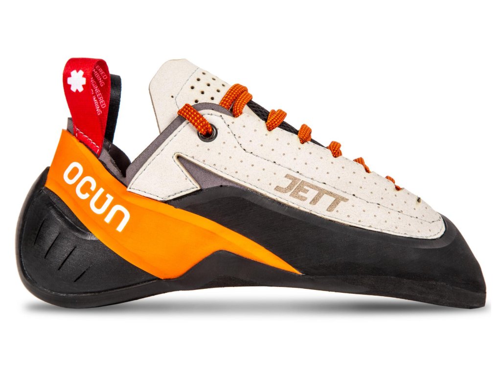 Ocún JETT LU je všestranná lezečka pre tých, ktorí chcú vyvážený výkon a pohodlie aj pri dlhom lezení. Kopyto All-round so strednou asymetriou a väčším objemom v priehlavku a špičke zaisťuje komfort na viacdĺžkach i lezeckej stene. Šnurovanie až k špičke dovoľuje presné dotiahnutie, CAT 1.5 podošva a tuhá medzistielka zase poskytujú istotu na malých stupoch. Bezšvová päta a priedušný jazyk zvyšujú celkový komfort.