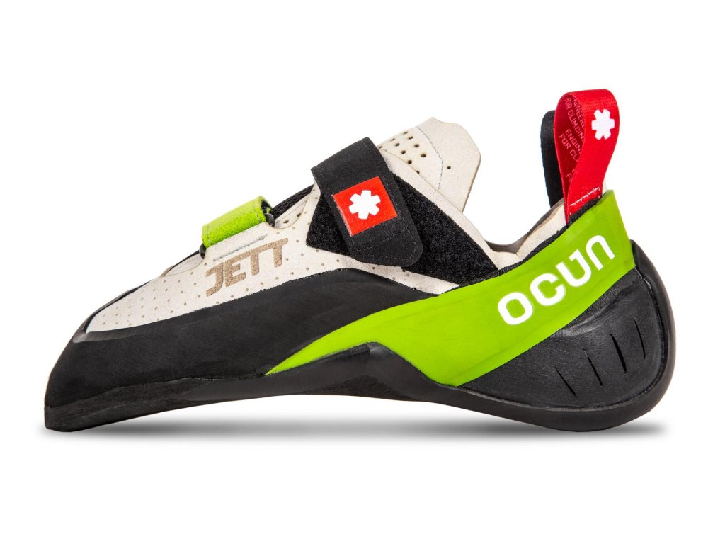 Ocún JETT QC je pohodlná lezečka vhodná pre všetkých, ktorí chcú posúvať svoje limity. Kopyto All-round so strednou asymetriou a väčším objemom v priehlavku aj špičke, spoločne s tuhšou medzistielkou poskytuje stabilitu aj oporu. Podošva z CAT rubber 1.5 drží presne tam, kde je treba, a dva protismerné suché zipsy uľahčujú obúvanie. Bezšvová päta a priedušný jazyk zaisťujú pohodlie aj pri dlhšom lezení.