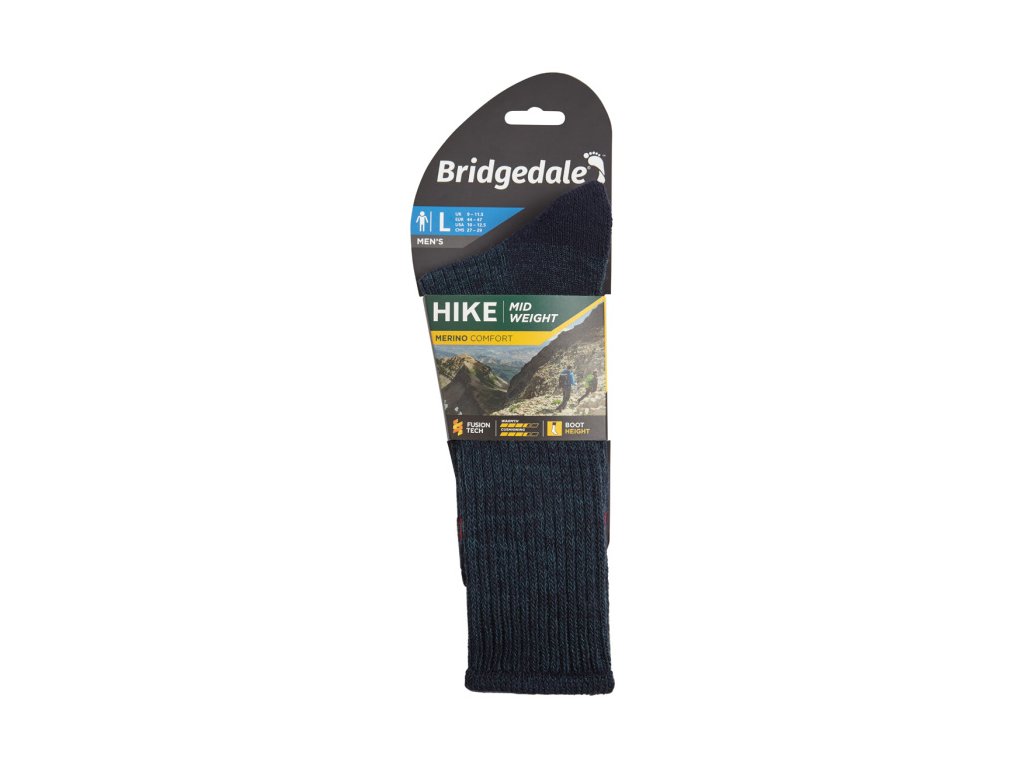 Pánske trekové ponožky Bridgedale HIKE Midweight Merino Comfort sú perfektnou voľbou na zdolávanie vrcholkov hôr. Vďaka použitým materiálom a unikátnym technológiám sú ponožky vhodné pre jednodňové i viacdňové treky v akomkoľvek ročnom období.