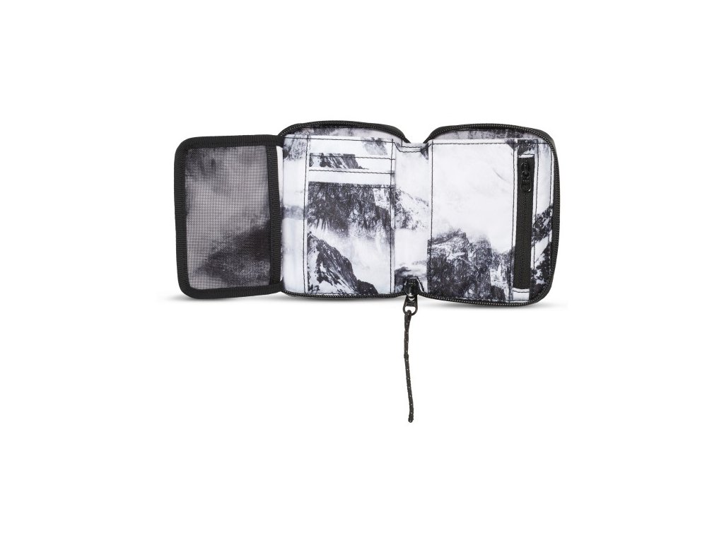 Úplne vodeodolná peňaženka so zipsom dokola. Vložky na karty sú vyplnené mikroplyšom, aby sa predišlo poškriabaniu. Oddelenie na mince má zips na zatvorenie a peňaženka má tiež oddelenie na bankovky a jedno s mriežkovým oknom na preukaz totožnosti. Odolná peňaženka pre aktívny životný štýl.
